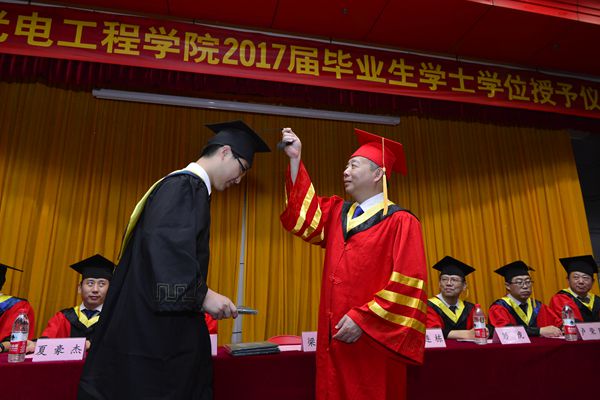 6月24日上午,我院2017届本科毕业生学士学位授予仪式在东风报告厅举行。校长梁樑、院学位评定委员会全体委员及245名学士学位获得者出席学位授予仪式。