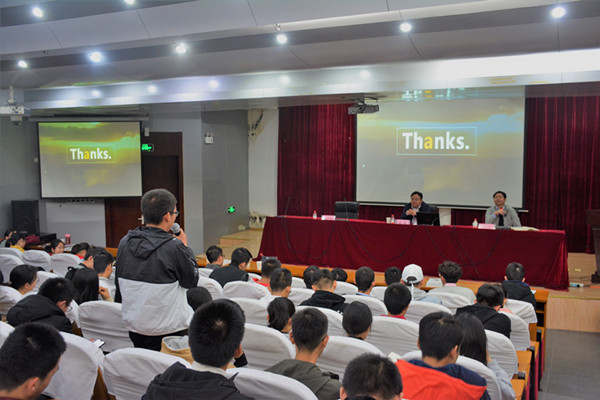 论坛共分为主题报告和自由交流两个环节,主题报告中谢海围绕大学生创业展开,其内容涵盖创业思维训练、自身能力评估、持之以恒的去实践等三个部分。他以当今社会创业成功人士的事例开篇,运用创业失败的案例和数据引发同学们的关注与思考。随后,介绍了大学生创业应具备的能力,即要有梦想、敢于冒险、注重效率,又要百折不挠、学会合作、专心致志、不受诱惑,告诉同学们在大学要努力学习,增强自身综合素养,勇于实践才是最好的创业途径。随后自由交流中同学们踊跃提出问题,谢海先生都一一耐心的解答,消除了同学们心中的疑惑。论坛在同学们热烈的掌声中圆满结束。