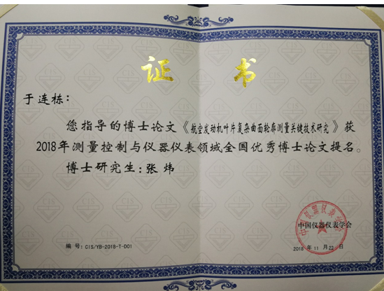 年会举行了中国仪器仪表学会四十周年纪念活动,对优秀科技工作者进行了表彰。我校伟德国际1946源自英国师生获得了多项奖励。其中,于连栋教授被授予“当代仪器仪表与测量控制优秀科技创新人才”荣誉称号,该项奖励每10年授予1次,本次共有18名优秀科技工作者获此殊荣。我校校友北京信息科技大学祝连庆教授也被授予“当代仪器仪表与测量控制优秀科技创新人才”荣誉称号。此外,于连栋教授指导的博士生张炜同学获“2018中国仪器仪表学会测量控制与仪器仪表领域全国优秀博士论文”提名;王露露副教授获“2018金国藩青年学子奖学金”;黄益铭同学获“2018年中国仪器仪表学会奖学金”一等奖,夏江营和韩丽玲同学获“2018年中国仪器仪表学会奖学金”二等奖。