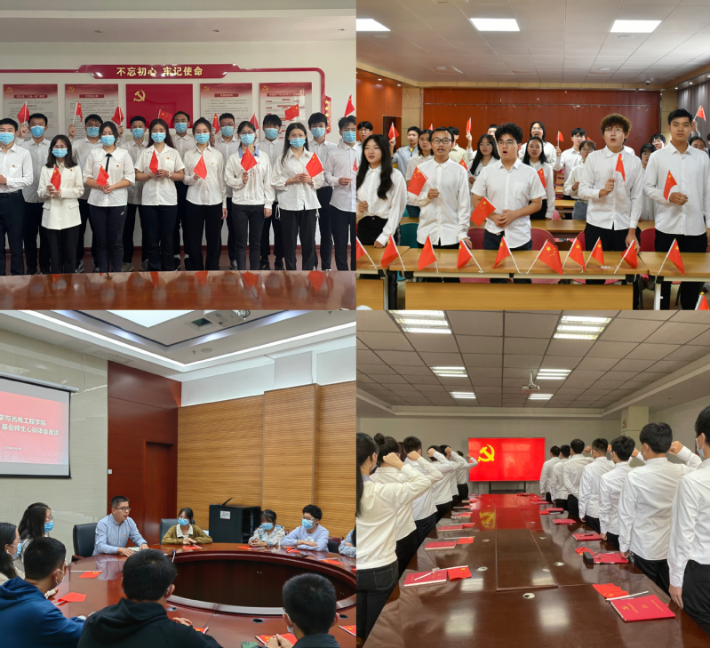 最后,本科生四个党支部还组织了重温入党誓词的活动。面对鲜红的党旗,全体党员高举右拳,慷慨激昂,庄严宣誓,用坚定有力的誓言,表达对党的无限忠诚。参加活动的党员们纷纷表示,通过此次重温入党誓词活动,进一步坚定了初心使命的精神信念,牢记嘱托、砥砺前行,弘扬伟大建党精神,从中不断汲取强大动力,永葆革命热情、拼命精神,为国家的现代化建设尽心尽力。