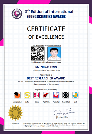 我院博士研究生封志伟同学荣获2023年国际学术“最佳研究者奖”
