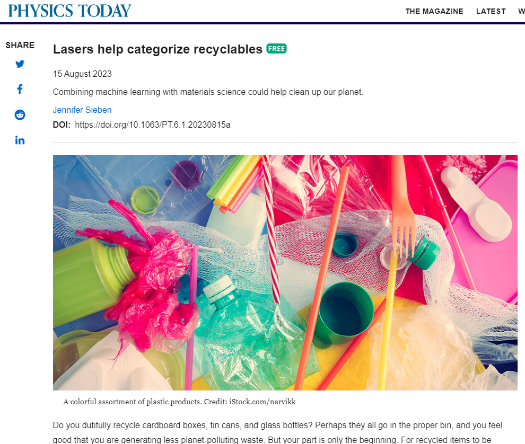 2.Physics Today:https://pubs.aip.org/physicstoday/online/42598/Lasers-help-categorize-recyclables?searchresult=1