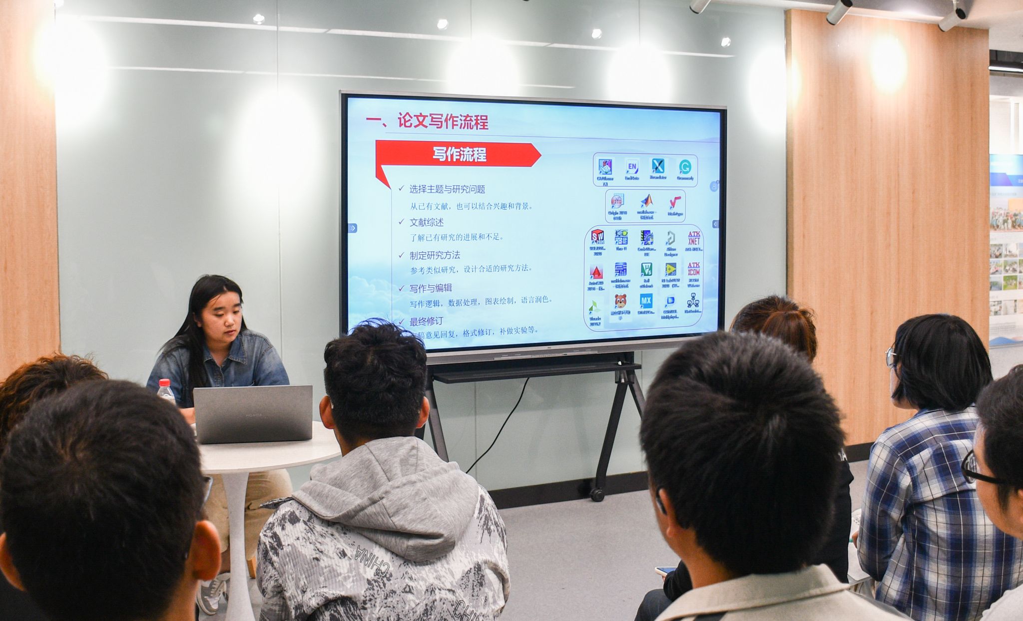 在交流中,刘欣结合自身科研经历和学习经验,从论文写作流程、文献检索技巧、文献阅读与整理三个方面进行了讲解和分享,她强调要注重科研基础素养的提升,从基础学习能力、基础理论知识、基本科研素养三个角度强调了系统提升自身的学习能力、动手能力和科研能力的重要性。随后,她结合仪器类学科相关科研学习软件介绍了具体的使用方法和相关专业资料的查询方式,为同学们专业学习分享了学习技巧。在答疑环节中,现场同学积极提问,刘欣耐心进行解答,得到同学们的一致好评。现场低年级同学表示,通过参加此次交流活动,自己了解到论文检索是学术研究的重要环节,也是提高学术素养的必备技能。
