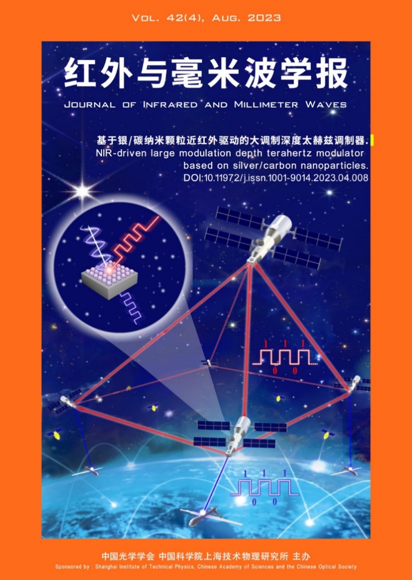 针对该问题,长期以来基于金属纳米材料的调制器被广泛关注,但这些传统金属纳米颗粒调制器存在制备复杂、对近红外光吸收差、吸收范围窄的缺点。为此,伟德国际1946源自英国(光电院)赖伟恩太赫兹研究组提出了一种基于银纳米颗粒/碳量子点(Ag NPs/CDs)近红外驱动的太赫兹调制器。通过将CDs与Ag NPs相结合的方法得到Ag NPs/CDs结构,改变了纳米粒子原有的介电环境,使得Ag NPs/CDs在近红外波段获得了更好的吸收光谱。实验结果表明,在近红外光的调控下,Ag NPs/CDs近红外驱动的太赫兹调制器在太赫兹波段范围内近红外驱动达到了极大的调制深度。该研究成果作为封面文章发表在红外毫米波领域国内外知名期刊---中科院SCI期刊《Journal of Infrared and Millimeter Waves》(中文名称:《红外与毫米波学报》,每年文章总数为126篇)的2023年42卷第4期上,该刊由中科院于1982年创刊,被“SCI”、“EI”全文收录,被评为“中国精品科技期刊”、“中国自然科学核心期刊”、“中国科技核心期刊”、“中国科学引文数据库统计源期刊”、“中国学术期刊综合评价数据库统计源期刊(CAJCED)”。同时该研究成果在2023年9月于中国·上海举办的《ESIT 2023》国际会议(Earth & Space:from Infrared to Terahertz International Conference 2023)中获得最佳学术Poster奖。