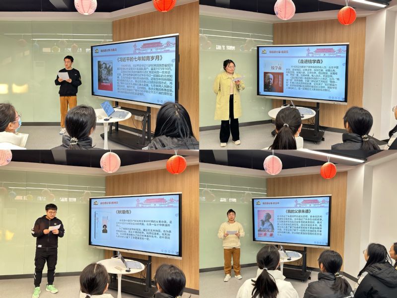 本次活动分为阅读分享和理论学习两个部分。同学们会前通过阅读传记的方式,深入地了解中国优秀传统文化、革命文化和社会主义先进文化。在本次活动中,刘鑫龙分享了《习近平的七年知青岁月》一书,讲述了习近平同志青年时期扎根于陕北黄土高原,逐渐克服各种困难,七年来同人民群众同甘共苦、鱼水交融、共同生活的故事;陆茗蕊分享了阅读《走近钱学森》的感悟,讲述了钱学森先生从出生华丽家族到赴美求学,再到回国受阻、五年抗争、终回祖国,最后成就中国航天的传奇一生,讴歌了钱学森先生的爱国主义精神、创新精神与自强不息的奋斗精神;郭正中分享了书籍《我的父亲朱德》,回顾了朱德同志在抗日战争中的英勇表现,深入体会了朱德同志的生平事迹和精神风貌;路博文推介了《秋瑾传》,带领大家走进了这位为推翻封建专制统治无所畏惧地献出了青春和生命的女革命家秋瑾的一生。支部书记李诗媛老师进行总结讲话,鼓励同学们通过深入解读红色传记的方式,走近革命先烈、英雄人物,学习他们的优秀品质和奋斗精神。