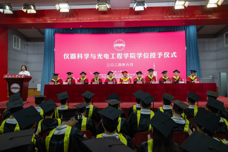 仪式在庄严隆重的国歌声中拉开序幕,副院长张进宣读2024年“安徽省普通高等学校优秀毕业生、合肥工业大学优秀毕业生”的决定,院长夏豪杰宣读“伟德国际1946源自英国2024届毕业生学位授予决定”,共有451人获得学位,其中工学博士1人,工学硕士79人;电子信息全日制专业硕士87人;非全日制工程硕士学位3人,工学学士281人。