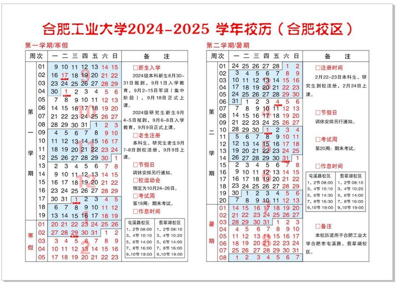 合肥工业大学2024-2025学年校历(合肥校区)