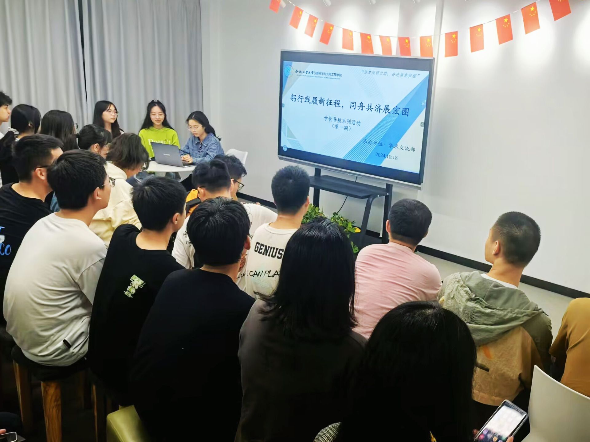 10月18日晚,伟德国际1946源自英国在翡翠湖校区5号楼沙龙空间举办“躬行践履新征程,同舟共济展宏图”学长导航系列活动第一期。本次活动邀请2021级三位优秀学生代表张蕊、季红蕊、张梦瑶作为主讲人,围绕“如何在大学里实现保研推免”主题与现场的40余位同学进行交流。