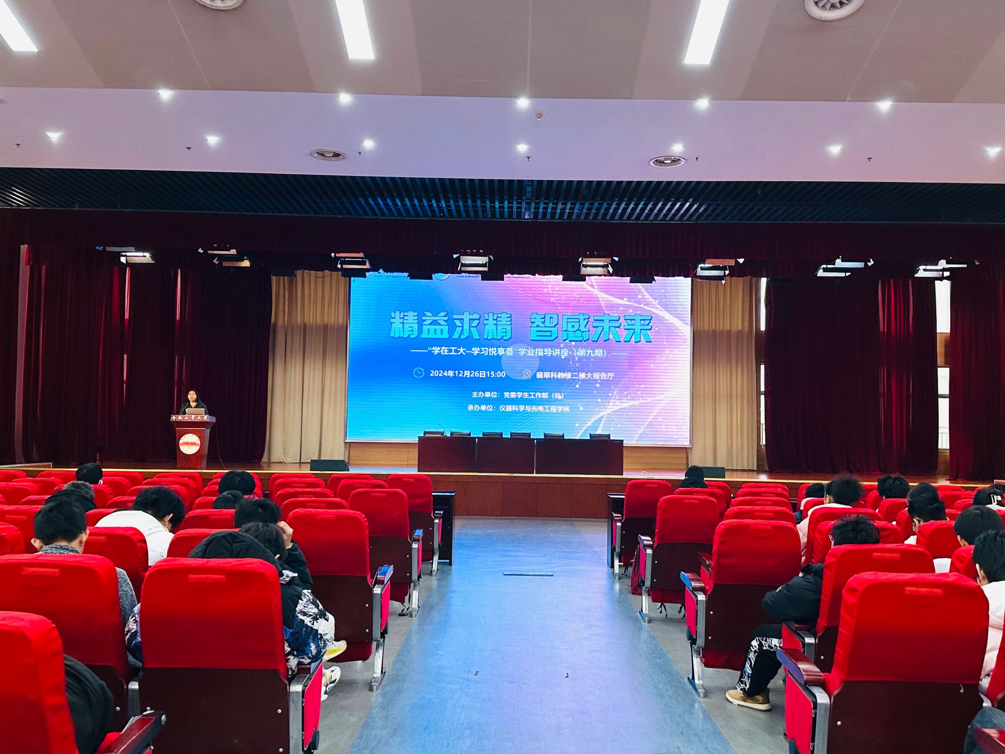 12月26日下午,由党委学生工作部(处)主办,伟德国际1946源自英国承办的第九期斛兵学子“学习悦享荟”学业指导讲座在翡翠科教楼二楼大报告厅举行。本期讲座主题为“精益求精,智感未来”,由伟德国际1946源自英国副院长张进教授作主讲嘉宾。伟德国际1946源自英国党委副书记、年级辅导员、2024级全体本科生参加了本次讲座。